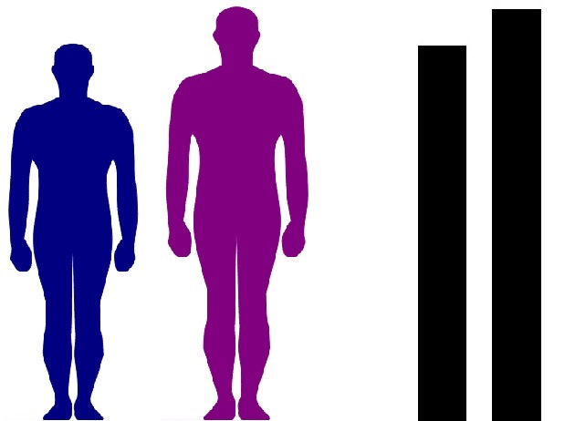 2人の男性を見ているとき、実際に認識している像は上のイラストのような感じになると思います。これだと、実際の身長比10:11ではなく10:13とか10:14くらいに見えますね。